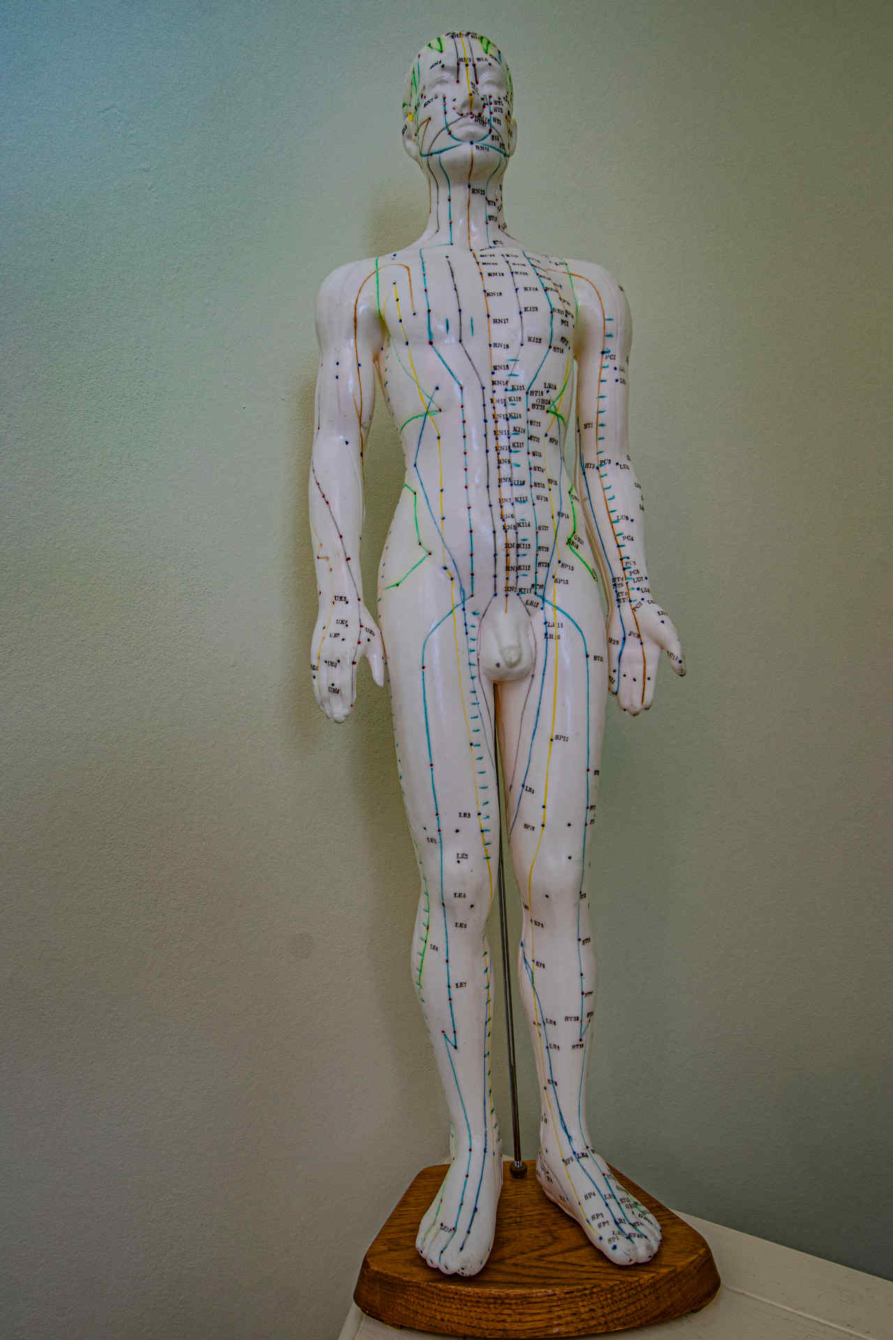 Er zijn 12 hoofdmeridianen. Deze meridianen lopen over het hele lichaam. Ze zijn intern gekoppeld met de organen. Dat wil zeggen dat de organen te beïnvloeden zijn door punten op de armen, benen of romp te prikken. Andersom is het ook zo dat bepaalde huidzones bepaalde organen weerspiegelen en zo de conditie van dat betreffende orgaan laten zien.